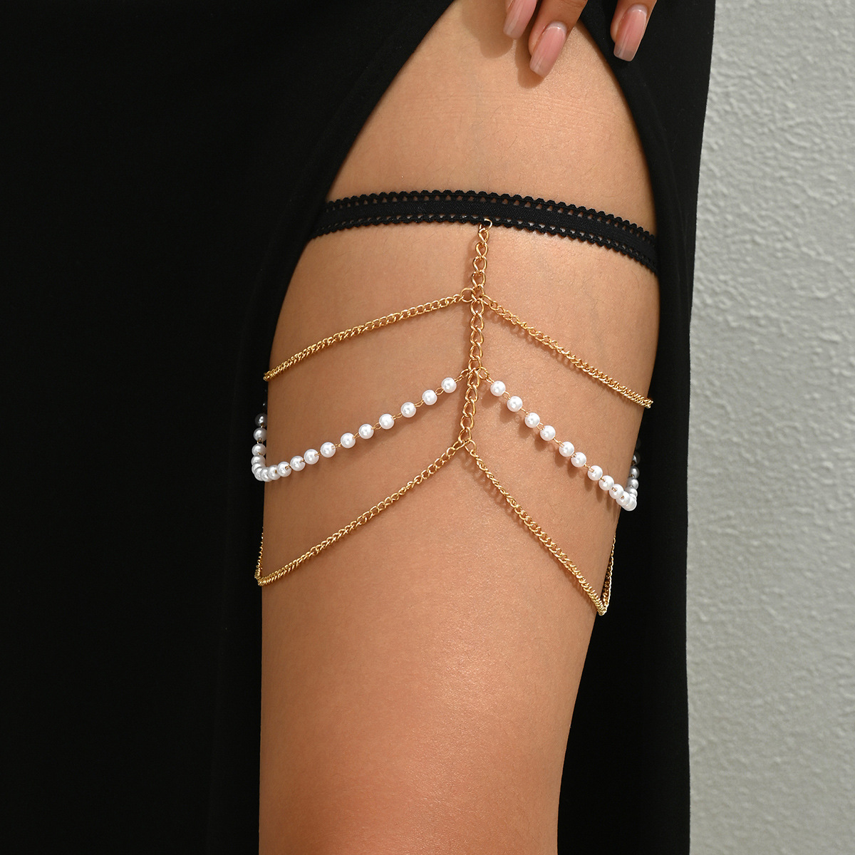 メーカー直販欧米クロスボーダー個性パールボディチェーンアクセサリーセクシー多層ビーチ太ももチェーンH0025