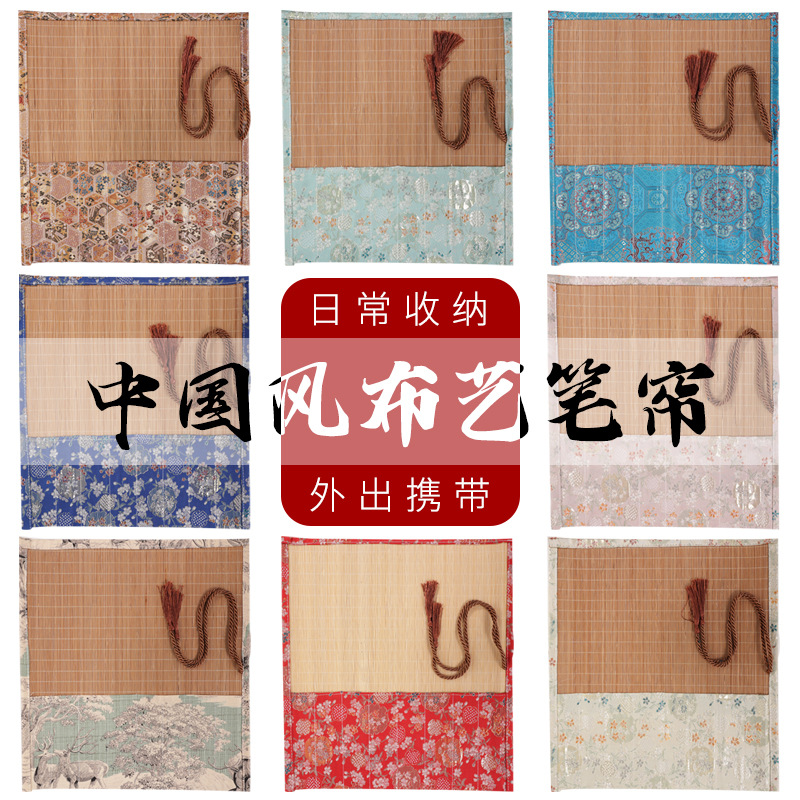 中国風布芸筆簾刺繍金糸筆簾文房四宝収納袋筆袋書道国画収納毛筆