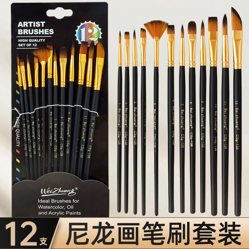 国境を越えた絵筆の黒い棒12本は扇形の異なるチョーク付きの水彩ペン丙稀油絵絵筆