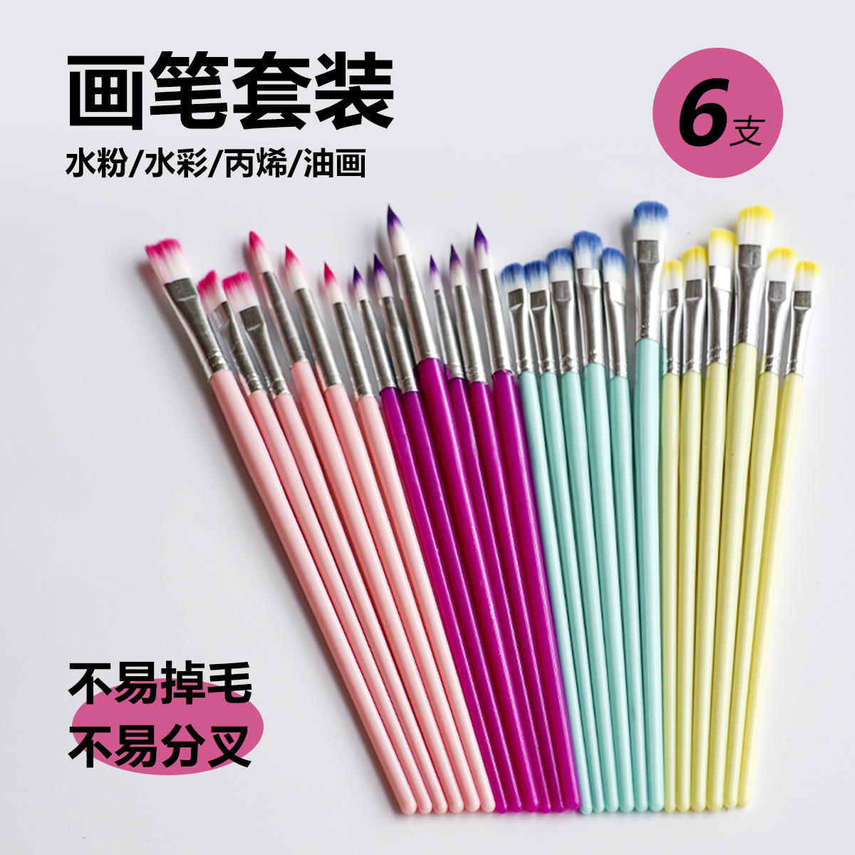 クロスボーダーカラー6本の絵筆セットのプラスチック棒の爪の丸い頭の先のアクリルの水彩の粉の絵画のブラシ
