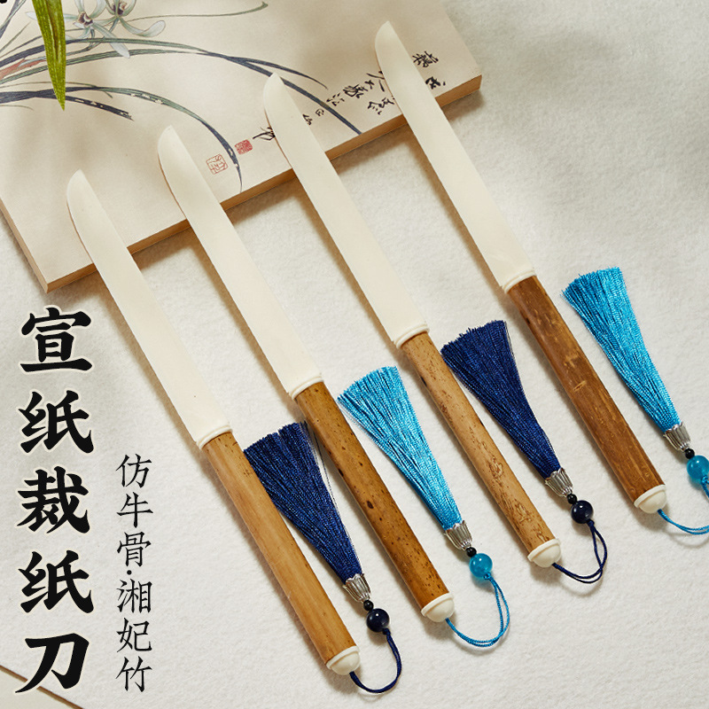 宣紙専用裁断刀書道切り紙刀湘妃竹牛骨復古手作り国画開封刀毛辺紙