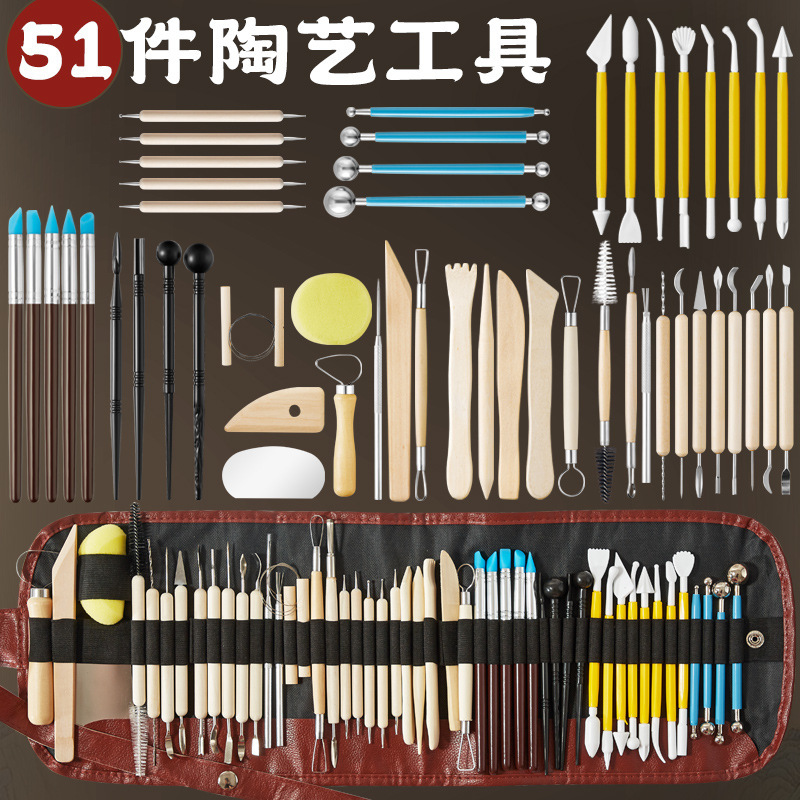 クロスボーダー Amazon 51 ピースセラミックツールセットソフト粘土粘土補助彫刻ナイフツールシリコンペン粘土圧痕