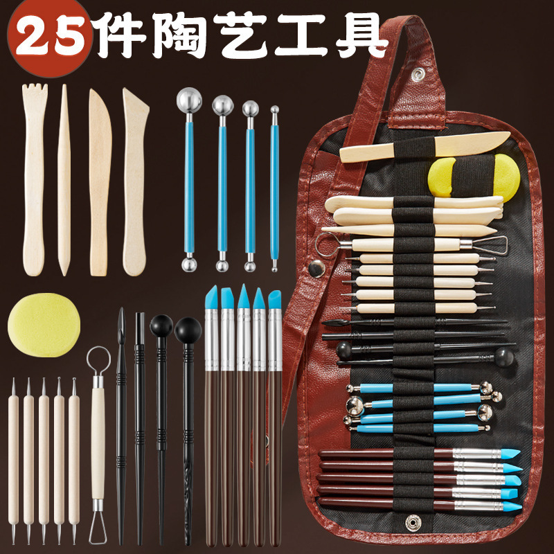 クロスボーダー陶芸ツール 25点セット 石塑粘土 手作りシリコンドットドリルペン 丸棒 ディテール針7本