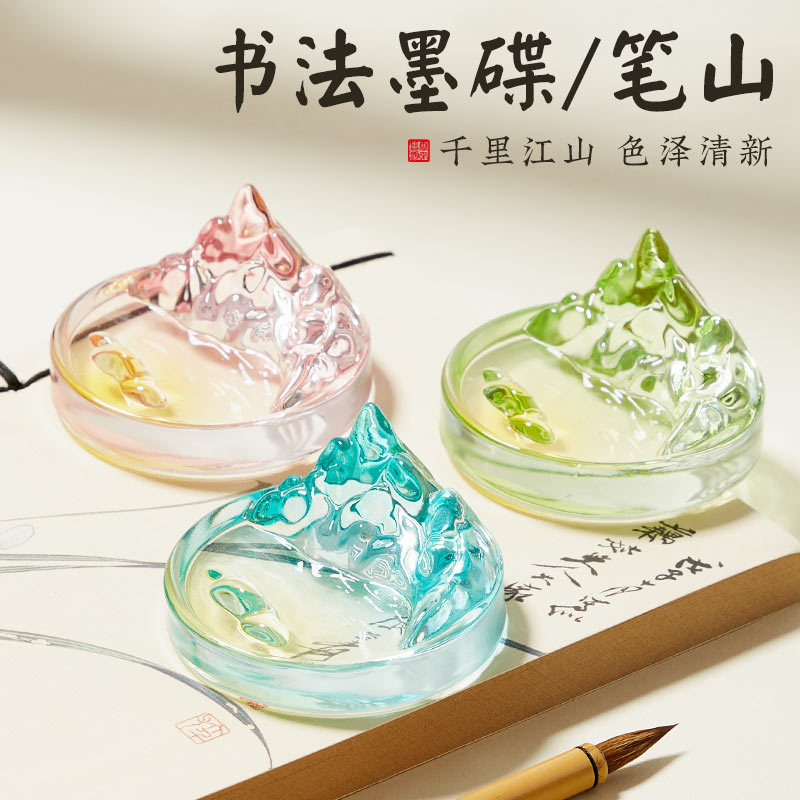 千里江山の円形の小さい墨の皿の筆は書道の国画の専用のインクの皿の墨の皿の多機能の文房の四宝をなめます。