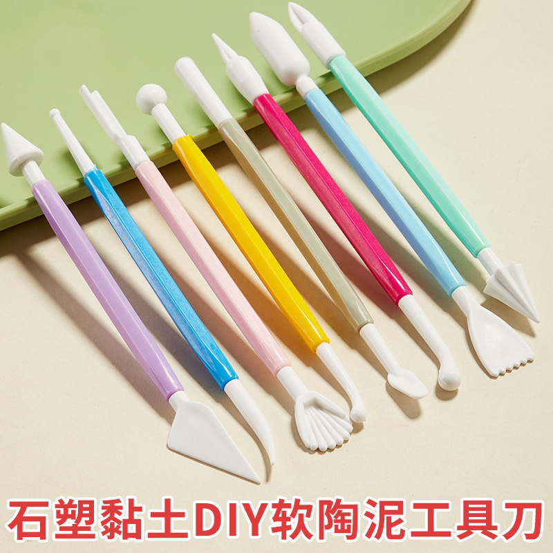 粘土ツール 柔らかい粘土 diy 油粘土 陶器粘土彫刻ナイフ 4 色プラスチック 8 点セット エンボス加工手作りセット