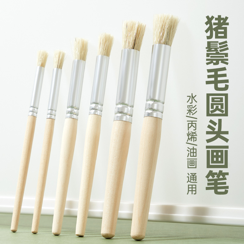 クロスボーダー6本の豚のたてがみの絵筆セット子供の木の棒の絵の落書きのアクリルの水彩ブラシの丸い頭の絵のブラシ