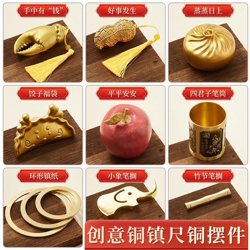 創意銅鎮尺梅蘭竹菊筆筒黄銅饅頭銅リンゴ文房四宝事務室書斎銅置物