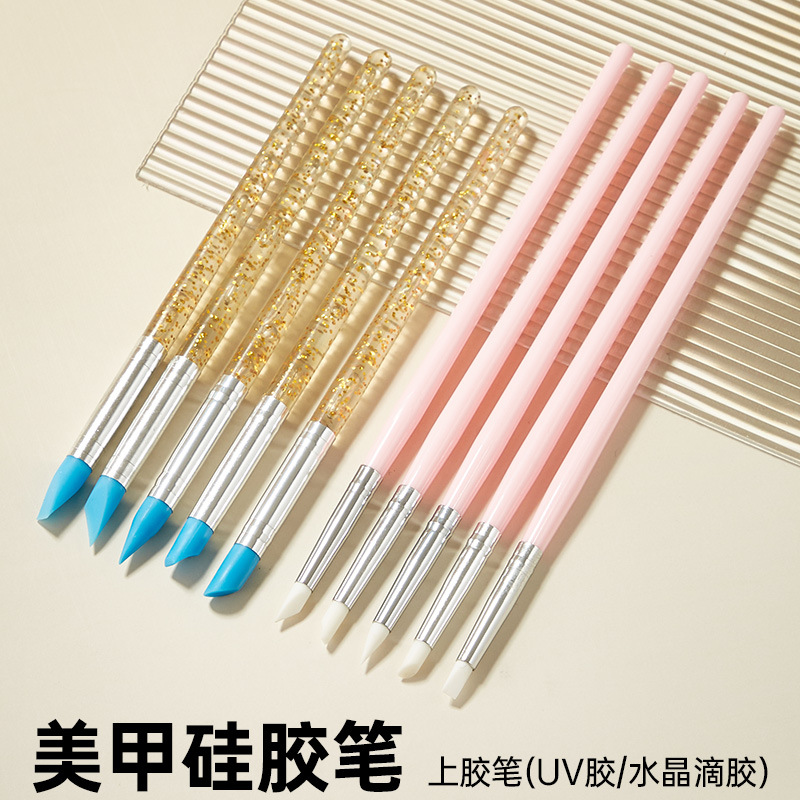 ネイルアート用のクロスボーダー特別5ツールセット、超ソフトシリコンペン、小さなヘッドシリコンエンボスペン、黒いロッド、中空彫刻花