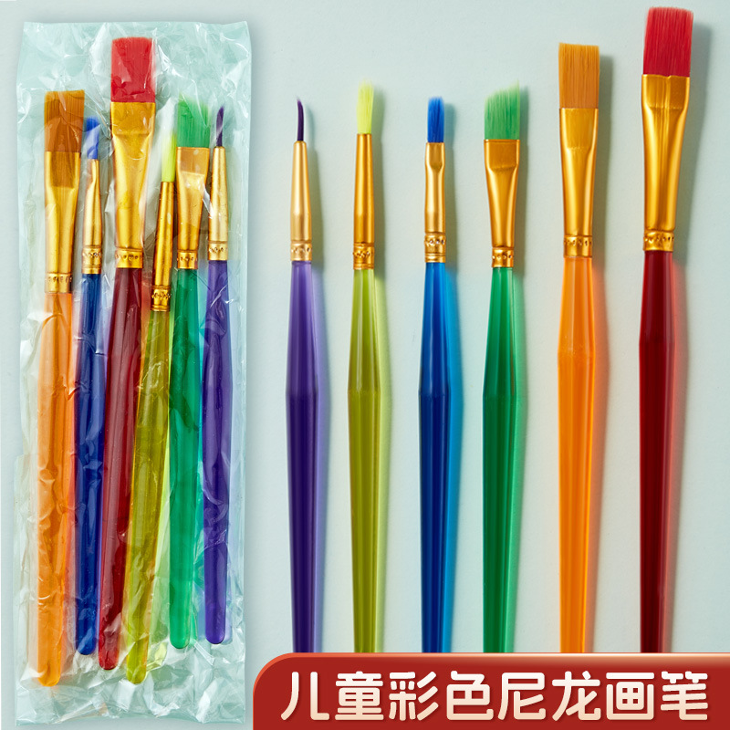 越境児童DIY絵画ブラシカラー透明6本のプラスチック棒水彩絵の具落書きブラシ