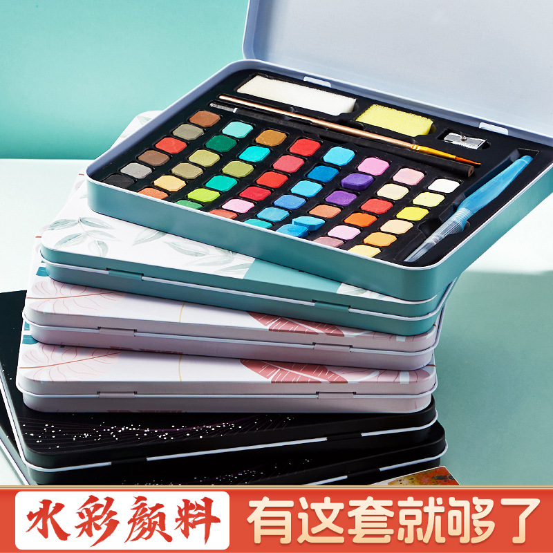 クロスボーダー固体水彩絵の具セットフルセット水粉絵の具絵画ツール子供初心者鉄ケースポータブル