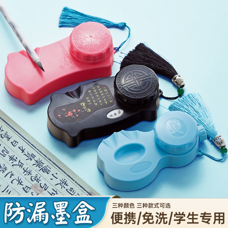 携帯式硯台書道カートリッジ蓋付き墨皿墨皿毛筆墨汁箱墨硯不乾墨無洗防乾