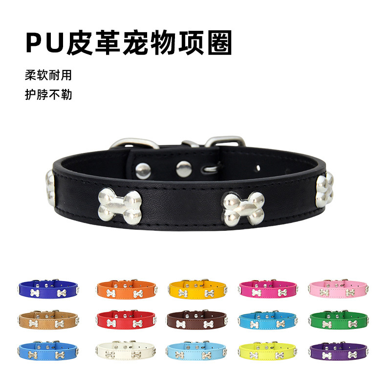 聚宝盆PU革ペット首輪純色中小型犬首輪首輪犬首輪猫犬飾り