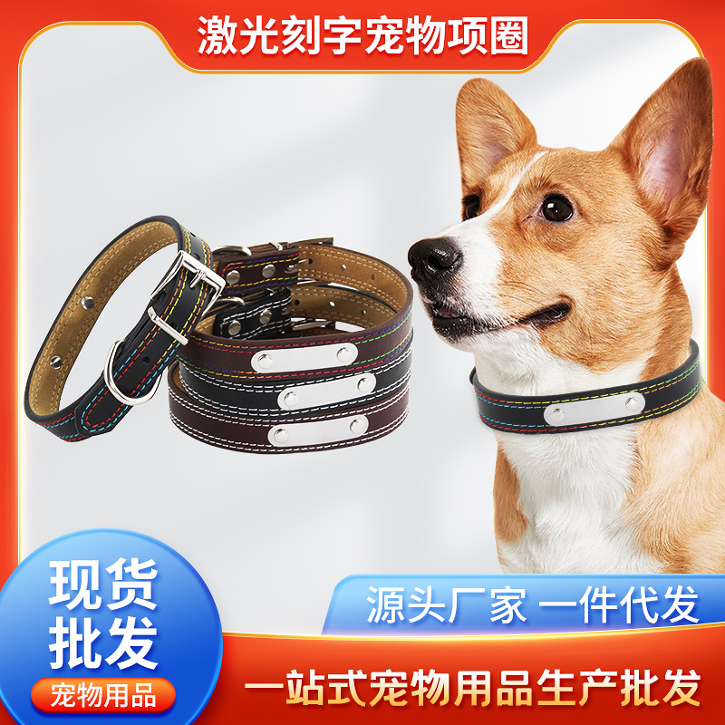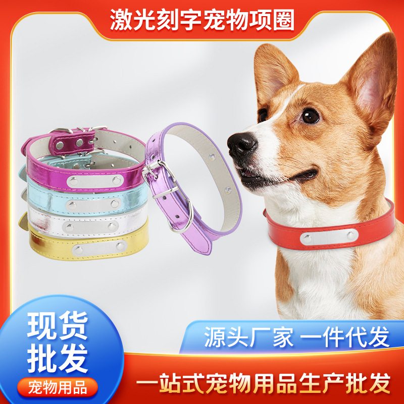 越境犬牌彫刻猫首輪卸売り亮皮pu犬首輪diy銘板反射牽引ロープネックレス