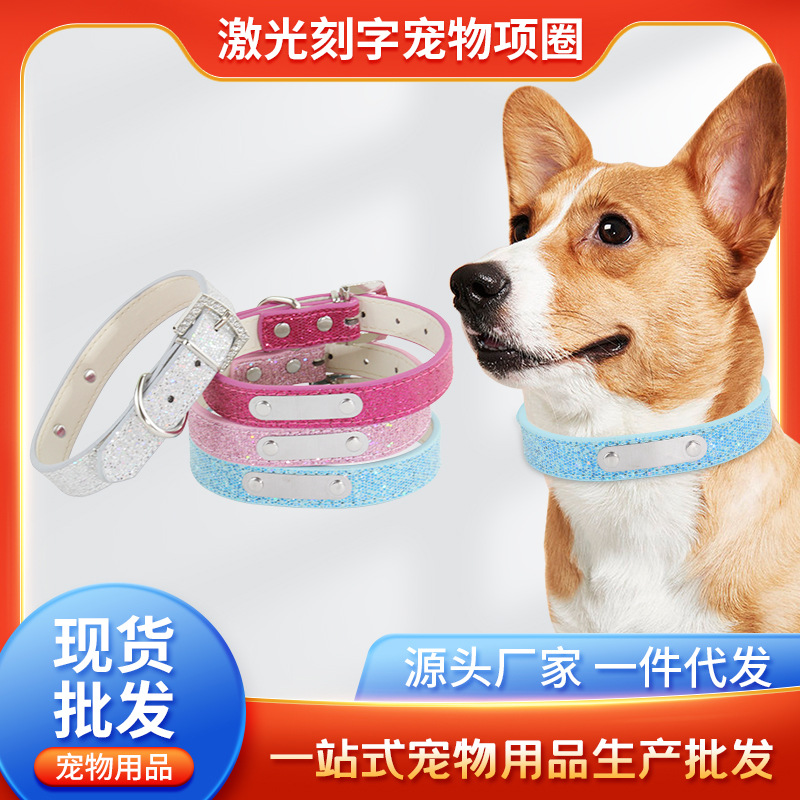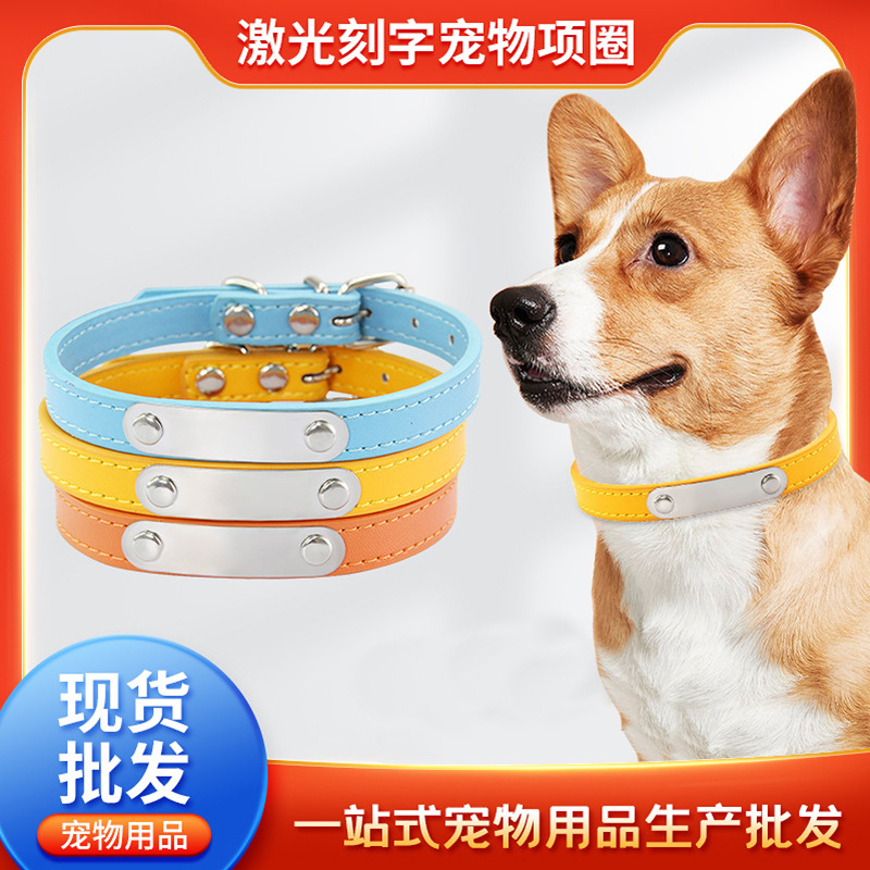 PUレザー犬用首輪ペットアクセサリー高級ベルベットメタルバックル首輪犬用品卸売小型犬向け越境