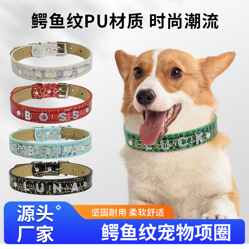 2024ペット首輪アクセサリーペット猫首輪PU革首輪中小犬首輪卸売り