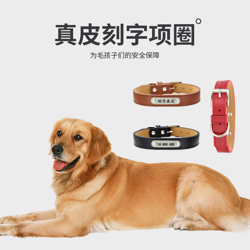 メーカー代理犬ブランド犬首輪ペット牽引犬首輪犬紐真皮彫刻金毛大型首輪