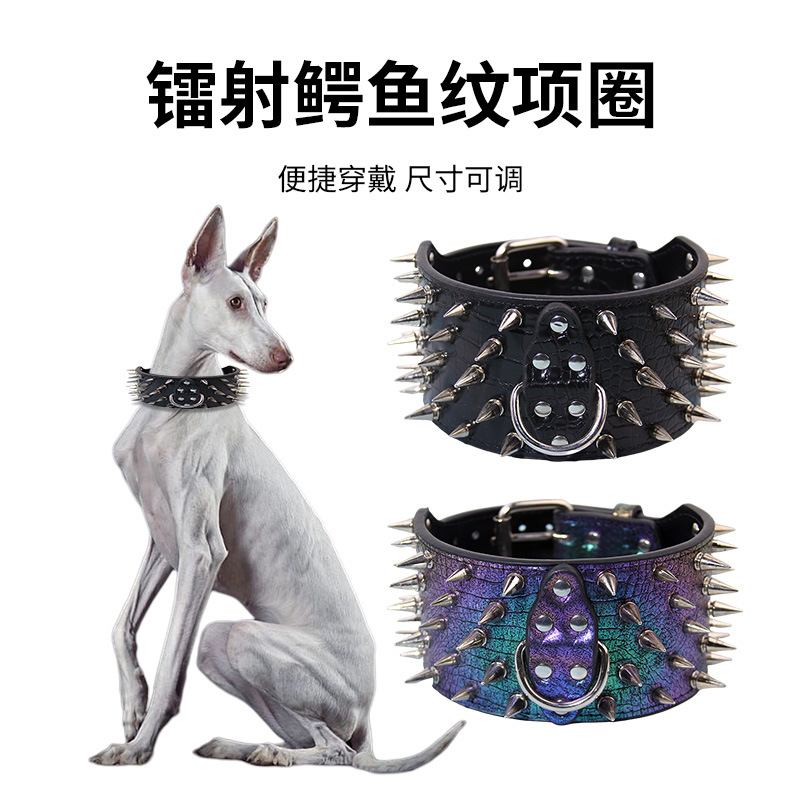 噛みつき防止首輪、テーパードリベット首輪、レーザーワニ柄首輪、首を保護する中型犬と大型犬用の首輪
