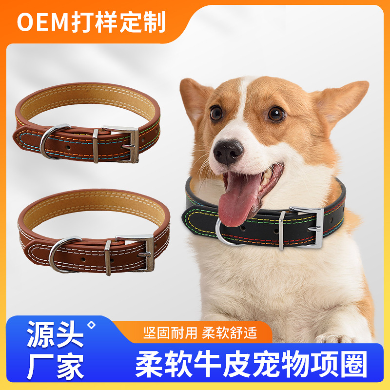 工場商品通ペット首輪大型犬猫首輪厚牛革8色革犬首輪アマゾン