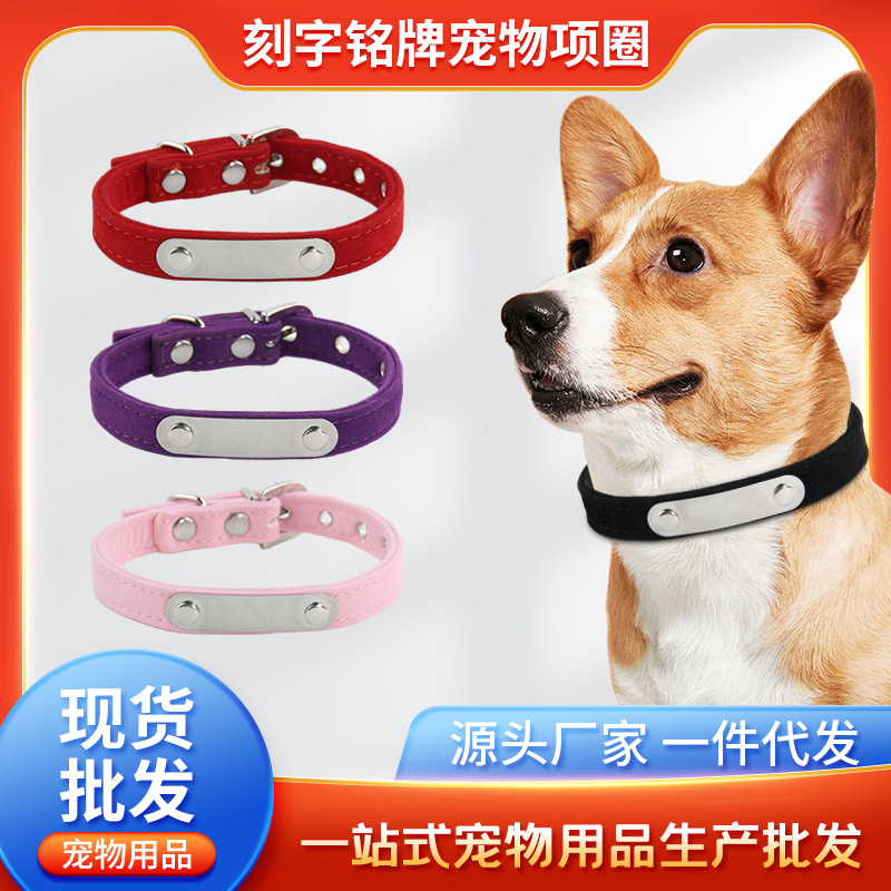 国境を越えた新しいネームプレートの彫刻首輪カラーベルベットステンレスDIY彫刻犬の首輪猫の首を囲む