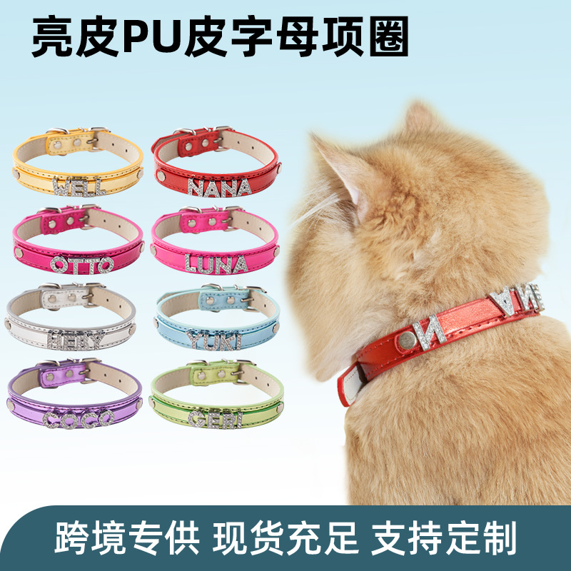 厳選された猫スパンコール光沢のある PU レザー猫と犬の新しいネックレスアクセサリーペットの首輪猫の首輪犬の首輪