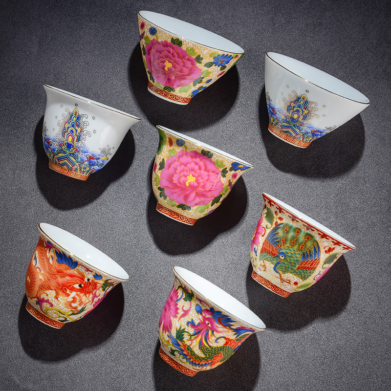 エナメルカップ陶磁器家庭用工夫茶器セットレトロ品茗杯景徳鎮万花描金主人杯