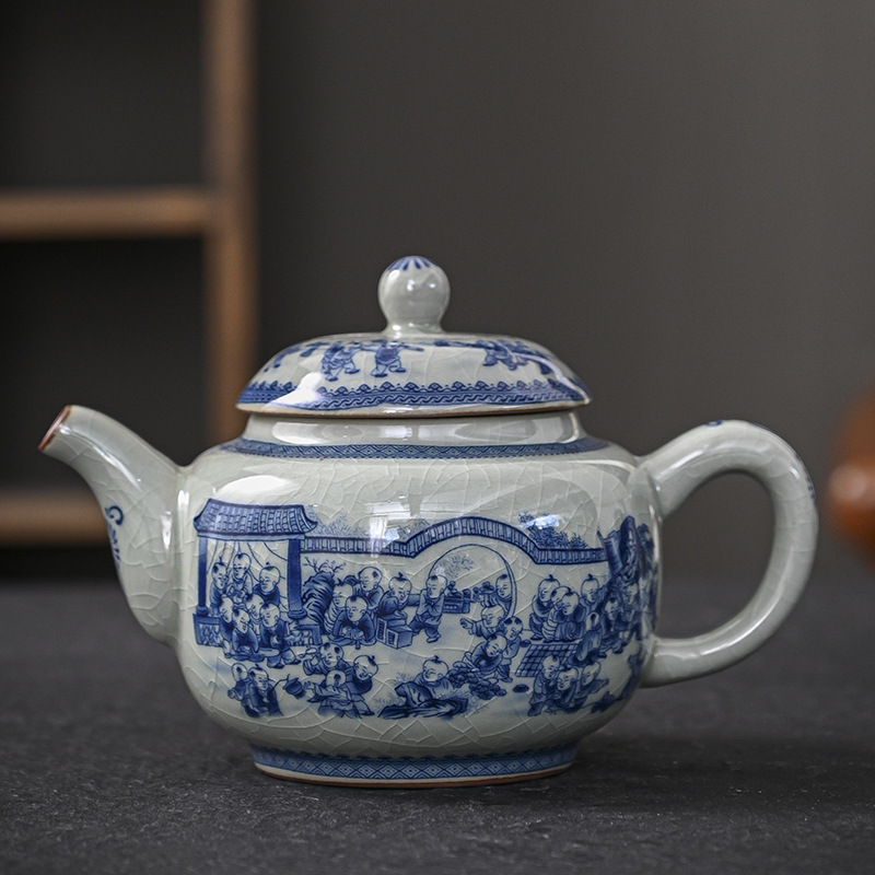 景徳鎮青花磁器千里江山カンフー茶器ティーポット茶器シングル陶磁器家庭用レトロお茶シングルポット