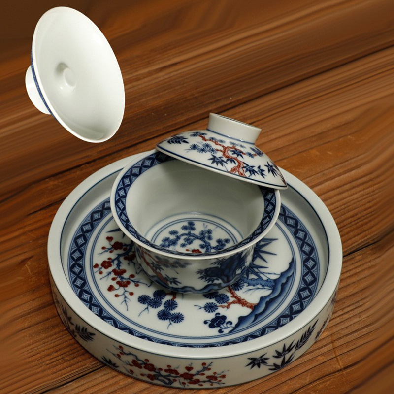 景徳鎮青と白の松葉と寒梅のティーセットは、長老、教師、リーダーの昇進や入学祝い、退職記念品として贈られます。