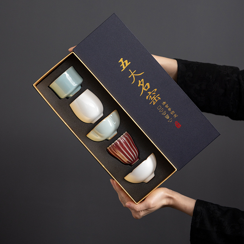 紫禁城の文化的で創造的な五大窯のティーカップとティーセットのギフトボックス、マスターカップ、外国人の友人への新築祝いの誕生日プレゼント