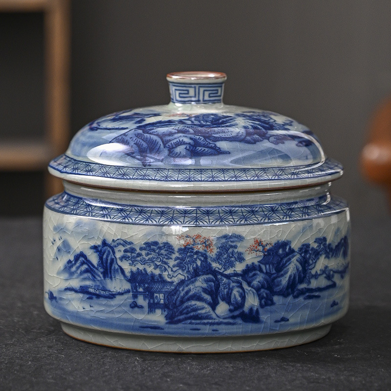 レトロ青花茶葉缶景徳鎮老陶泥陶磁器密封缶家庭用防湿缶メーカー卸売り