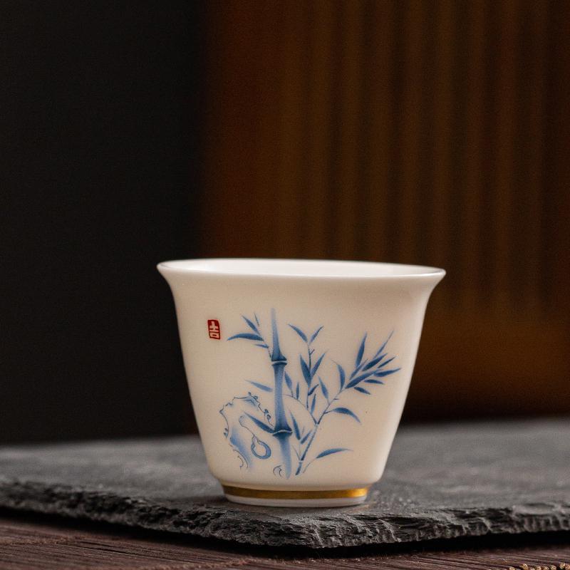 徳化白磁茶杯工夫茶具セット家庭用シンプルな主人杯シングルカップ