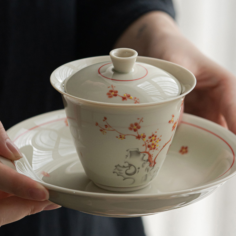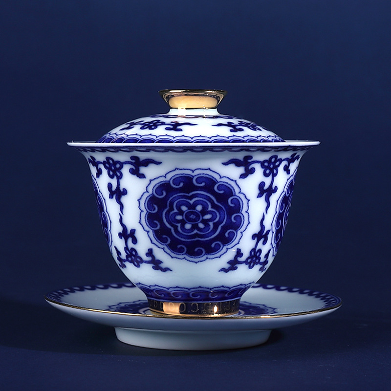青花磁器三才蓋茶杯陶磁器泡工夫茶具セット家庭用復古単一大茶碗敬茶碗