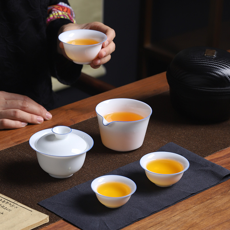 白磁器快客杯一壺三杯携帯型工夫旅行茶器セット家庭用屋外収納バッグロゴ