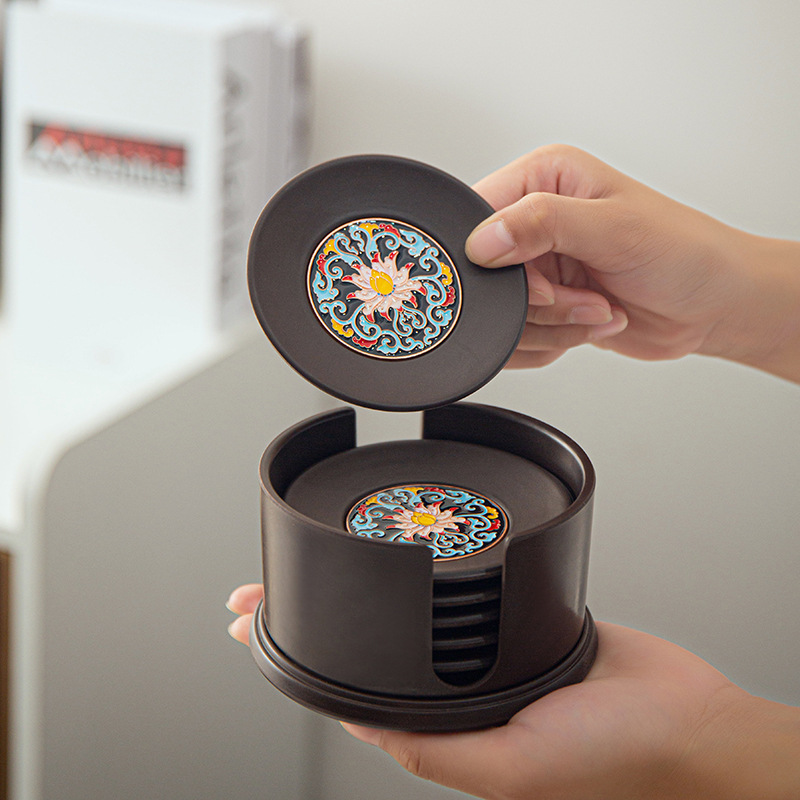 エナメル色の電気木製のカップマット家庭用の黒檀の木のセットの部品の工夫の茶道の茶器の断熱のマットのカップホルダー