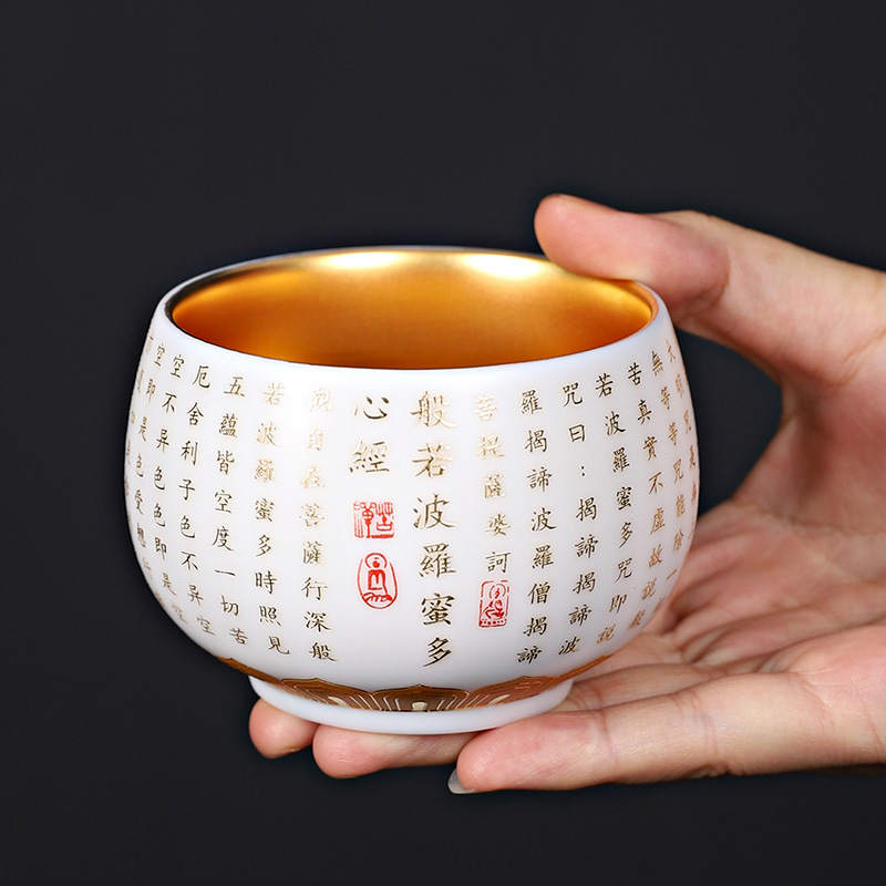 羊脂玉内胆24k金主人杯高級カンフー茶器大サイズ品茗杯杯金杯ギフトボックス
