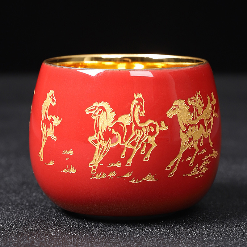 24k金内胆八駿図主人杯カンフー茶具茶杯品茗杯高級陶磁器大茶杯プレゼント