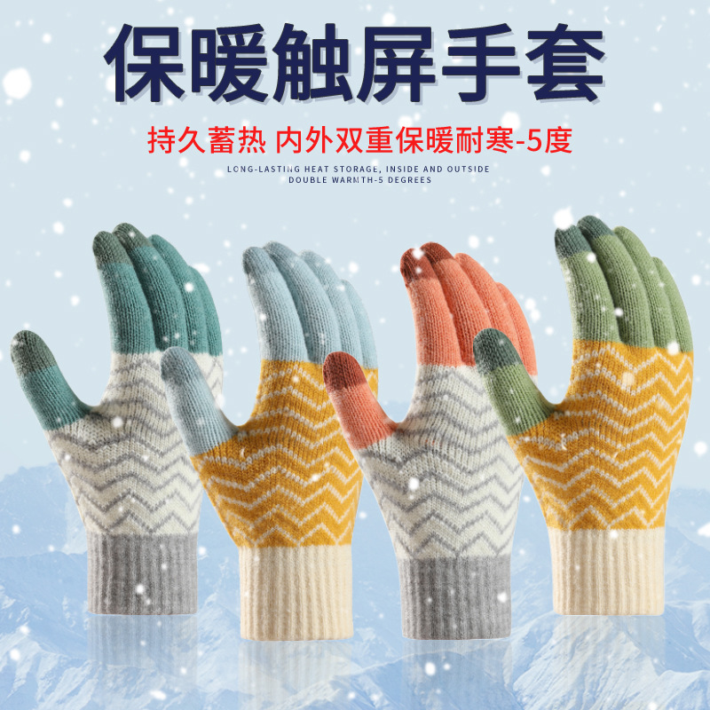 工場直売男女冬保温毛糸タッチパネルとベルベットの厚い分指ジャカード学生がニット手袋に乗る
