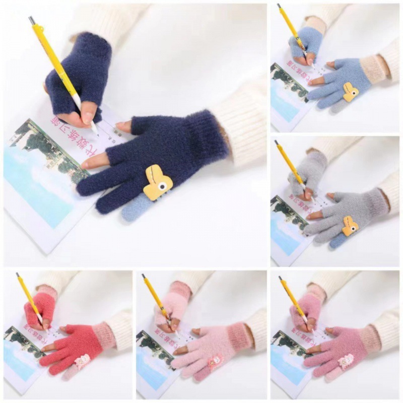 玉桂犬のクロミ男女子供の中で半分の指の手袋の秋冬のタイプの子供の手袋の保温は5本の指を分けて手袋を覆います。