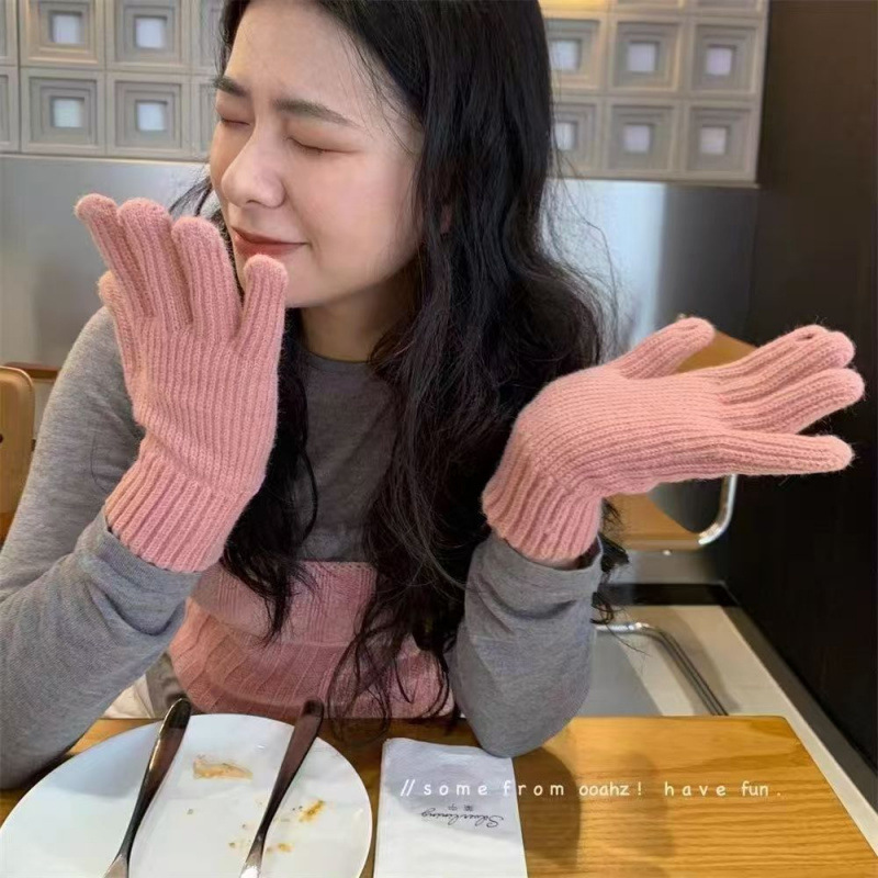 韓国五本指ニット手袋冬保温指分け手袋タッチパネル防寒成人毛糸男女手袋防風