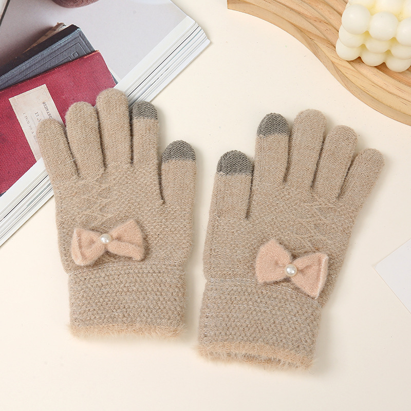 蝶結びの色合わせの手袋のタッチパネルの手袋は冬の保温に乗ります。
