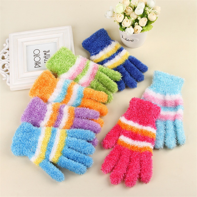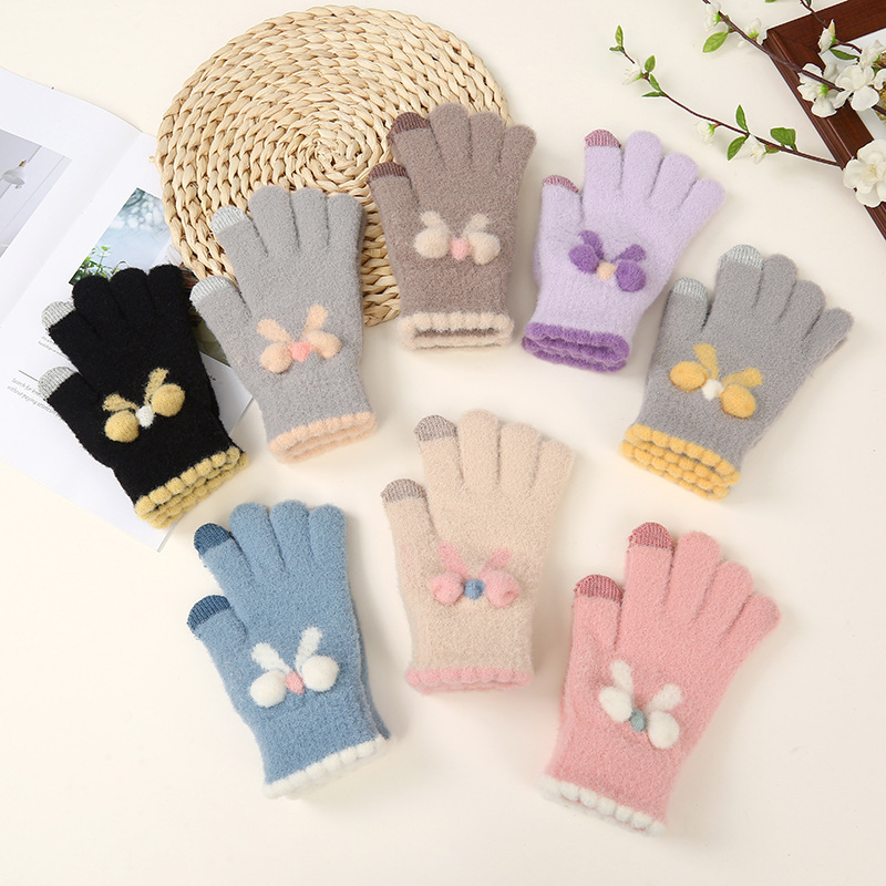 2024子供の厚い毛の指のニットの手袋の漫画の手袋の冬の防寒の暖かい5本の指