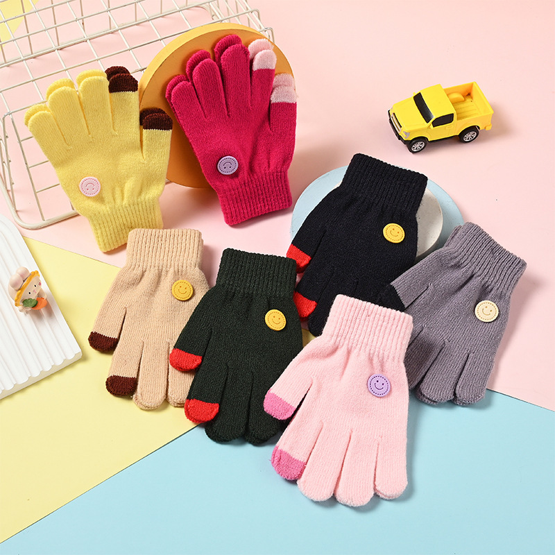 新しい子供用手袋秋冬ベルベット厚手保温赤ちゃんかわいい男女毛糸ニットマジック指分け手袋