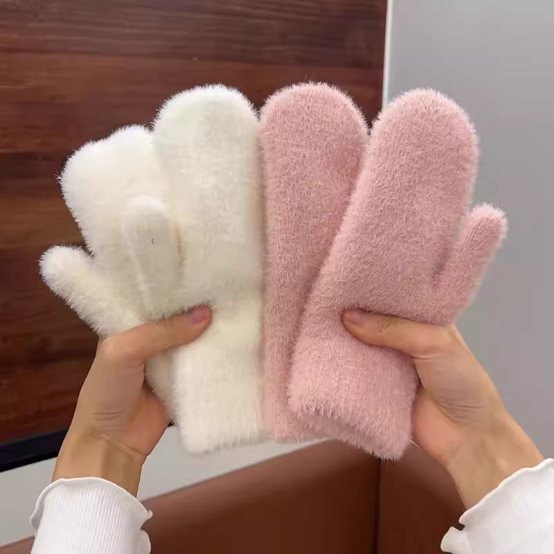 工場直売冬にぬいぐるみの純色手袋を厚くするシンプルなファッションニットとベルベットの保温手袋卸売り