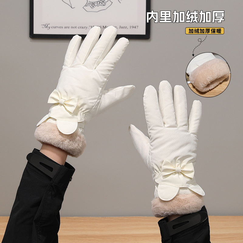 高颜値ファッション秋冬保温手袋女性モデルかわいいベルベット保温タッチパネル滑り止め防水スキー手袋