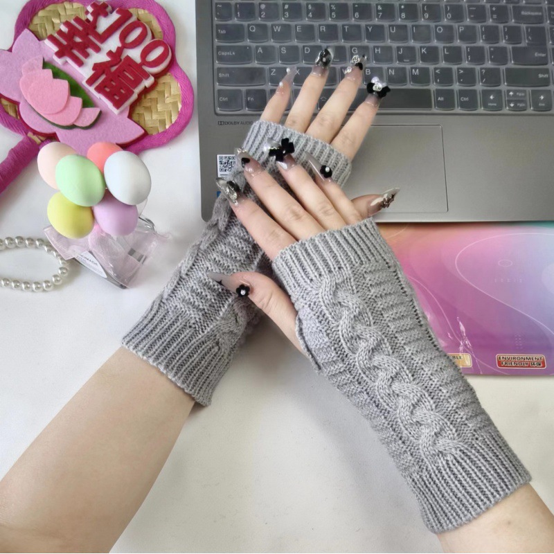2024ファッションニット毛糸半指手袋漏れ指袖カバーショートタイプ学院風女子保温腕保護袖