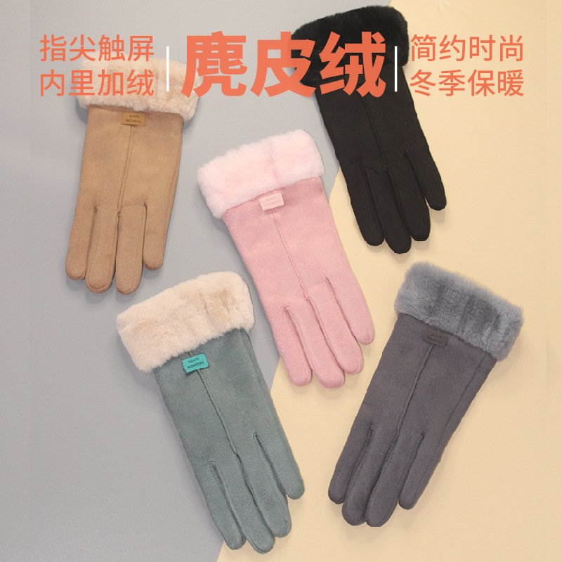 手袋冬の女性insかわいいベルベット保温防寒タッチパネルソフト妹自転車学生五指自転車秋冬