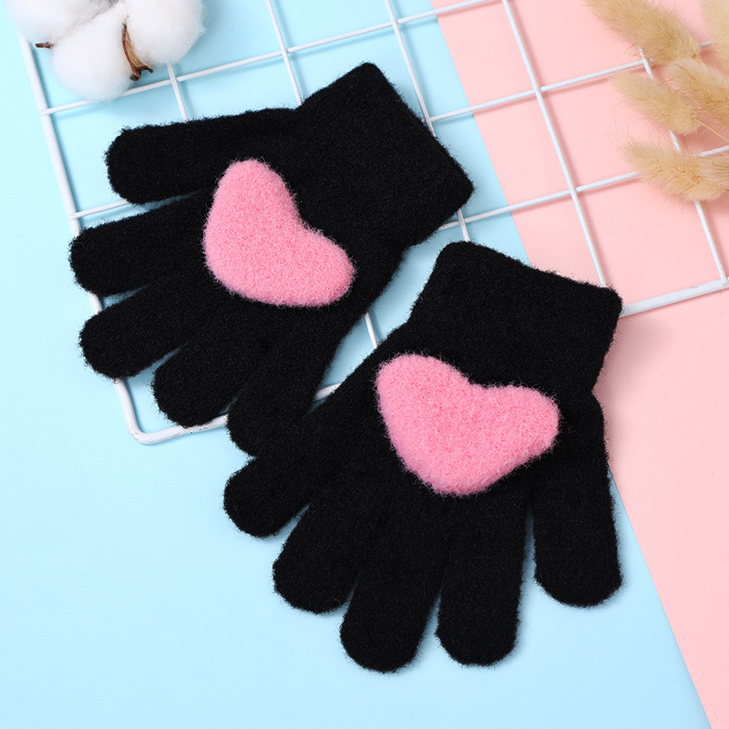 韓国版高颜値児童手袋冬の新型ins色合わせ学生五本指ニット赤ちゃん手袋