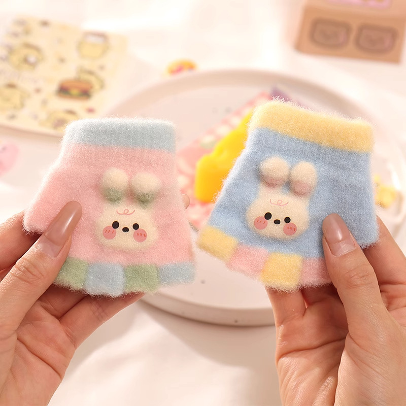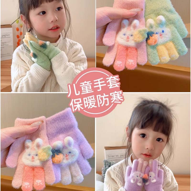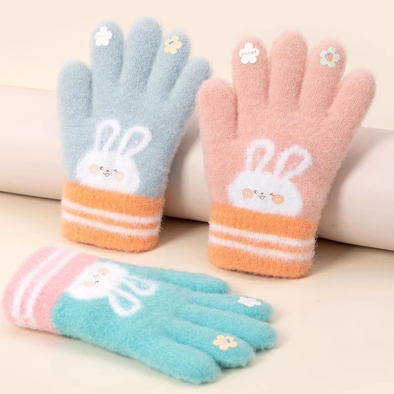 2024新型児童手袋3-8歳漫画ウサギ秋冬保温防寒男女赤ちゃんニット手袋