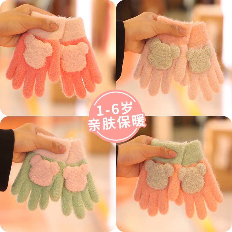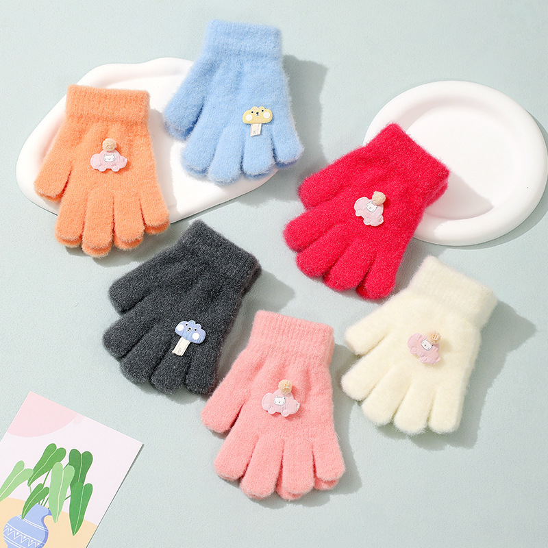 秋冬女の子幼稚園子供手袋五本指かわいい漫画ニット毛糸防寒保温子供手袋