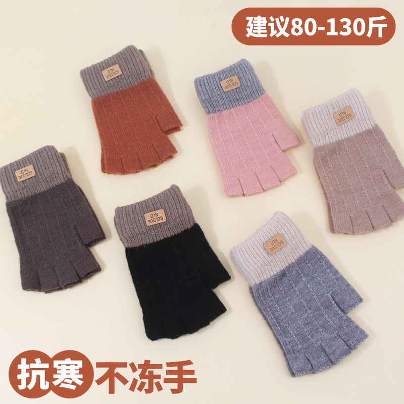 2024男性冬防寒保温ベルベットの屋外露指学生は、毛糸の女性秋手袋を書く