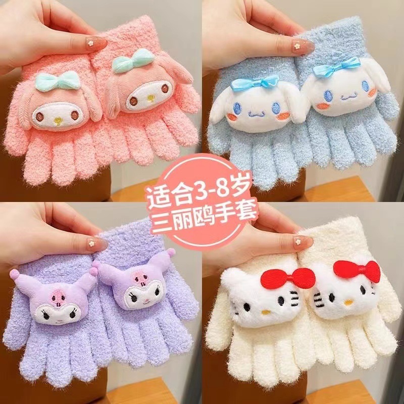 サンリオ庫落米児童児童の冬の保温は全指2024秋冬の新型ベルベット厚手手袋を指す